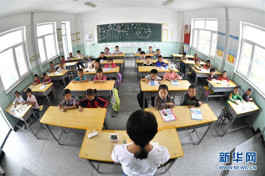 寧夏銀川市永寧縣閩寧鎮原隆村原隆小學,一年級的孩子們在上課(2019年9月3日攝)。 新華社記者 王鵬 攝