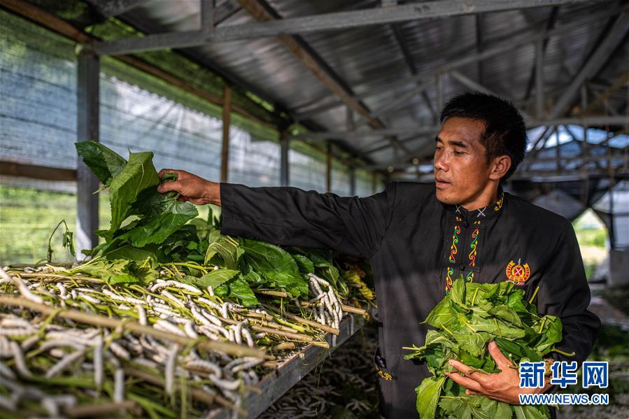 2020-09-05 21:40:24 來(lái)源:新華網(wǎng) 責(zé)任編輯:黃麗紅 作者:字強(qiáng)、胡超新華社昆明9月5日電 題:遍身羅綺者,亦是養(yǎng)蠶人——云南偏遠(yuǎn)邊疆村寨奔小康 新華社記者字強(qiáng)、胡超 中緬邊境,萬(wàn)畝綠油油的桑樹(shù)向陽(yáng)生長(zhǎng),郁郁蔥蔥。 49歲的景頗族漢子董跑約在桑田里忙碌著,他要把鮮嫩的桑葉及時(shí)收割下來(lái),喂養(yǎng)蠶棚里的幼蠶。他種了大半輩子甘蔗、水稻,經(jīng)歷了吃不飽、穿不暖、住茅草房的苦日子,近三年種桑養(yǎng)蠶后,不僅收入翻番、吃穿不愁,還蓋了新房、買(mǎi)了轎車(chē)。 董跑約所在的云南省隴川縣隴把鎮(zhèn)曼崩村是一個(gè)景頗族村落,有農(nóng)戶(hù)52戶(hù)236人,其中建檔立卡貧困戶(hù)21戶(hù)69人。 新中國(guó)成立前,董跑約的先輩們困居深山叢林中,以狩獵、刀耕火種為生,直到20世紀(jì)末才陸續(xù)搬到如今的曼崩村。 董跑約告訴記者,搬出大山后,村民們?cè)诿┎莘坷锇玖撕荛L(zhǎng)一段時(shí)期,直到2006年,在國(guó)家政策幫扶下,村民們才蓋起土木結(jié)構(gòu)的瓦房。2014年國(guó)家啟動(dòng)精準(zhǔn)扶貧工程,村民們又陸續(xù)新建了磚房,實(shí)現(xiàn)“安居夢(mèng)”。 “最大的改變還是產(chǎn)業(yè)。”董跑約說(shuō),種水稻、玉米勉強(qiáng)夠吃,賺不來(lái)錢(qián)。近年來(lái),政府鼓勵(lì)村民種桑養(yǎng)蠶,大家的收入一下子提高了很多。 據(jù)隴把鎮(zhèn)黨委書(shū)記董橋相介紹,2017年以來(lái),在上海市青浦區(qū)對(duì)口幫扶下,曼崩村陸續(xù)種植了500余畝桑樹(shù),連年大豐收,村民們邁入了增收致富的“快車(chē)道”。