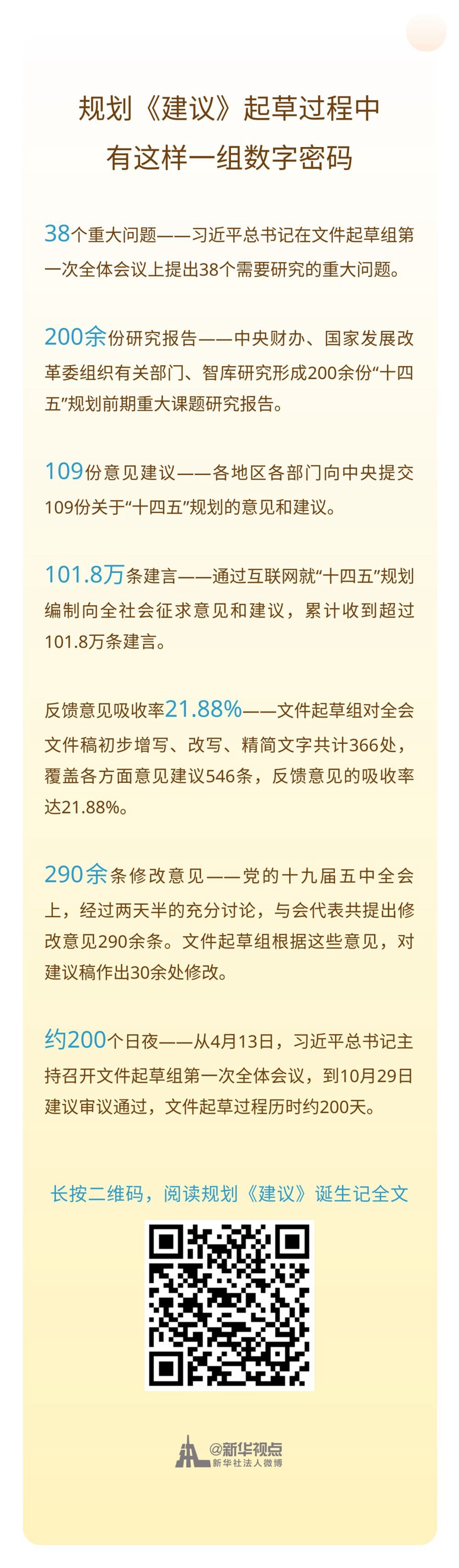 新華社4日播發(fā)了規(guī)劃《建議》誕生記,這篇萬字長(zhǎng)文中,披露了規(guī)劃《建議》起草過程中的一組數(shù)字密碼。