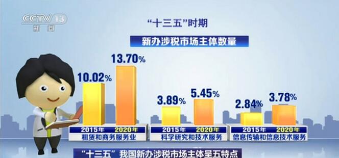 2021-01-06 13:32:26 來源:央視網(wǎng) 責(zé)任編輯:陳瑋 作者:央視網(wǎng)消息:“十三五”時(shí)期,我國新辦涉稅市場主體數(shù)量大幅增加,而且呈現(xiàn)出五個(gè)比較明顯的特點(diǎn)。
