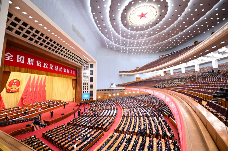 2021年2月25日,全國脫貧攻堅總結表彰大會在北京人民大會堂隆重舉行。新華社記者 李響 攝