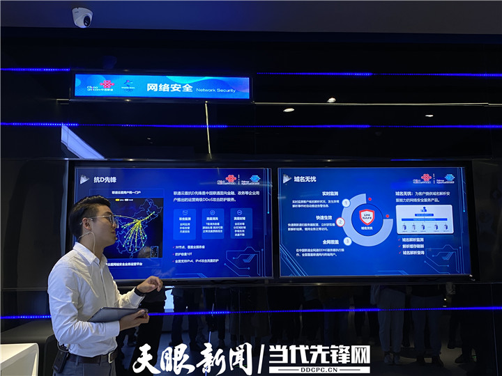 講解員為大家介紹了“抗D先鋒”“域名無憂”兩個亮點 在網絡安全版塊,講解員為大家介紹了“抗D先鋒”“域名無憂”兩個亮點項目。聯通云盾抗D先鋒是中國聯通面向金融,政務等企業用戶推出的運營商級DDoS攻擊防護服務,目前已覆蓋全國各省。據了解,在網絡安全方面,聯通省公司安全運營平臺對客戶上網流 量進行統的管控、 審計、分析,并能針對上網流量進行安全查殺與防護,在安全的情況下實現為客戶代理上網,從而保障了客戶上網的安全與行為管控。
