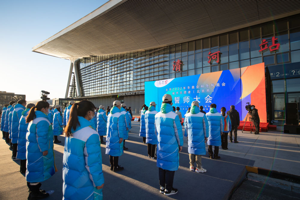 12月6日,北京2022年冬奧會和冬殘奧會城市志愿者(北京市)誓師大會在北京的京張高鐵清河站舉行,50余名城市志愿者代表參加了活動。