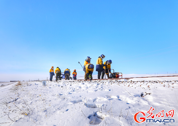 中國鐵路沈陽局集團有限公司通遼工務段組織工人對珠珠鐵路進行凍害整治作業(yè)。