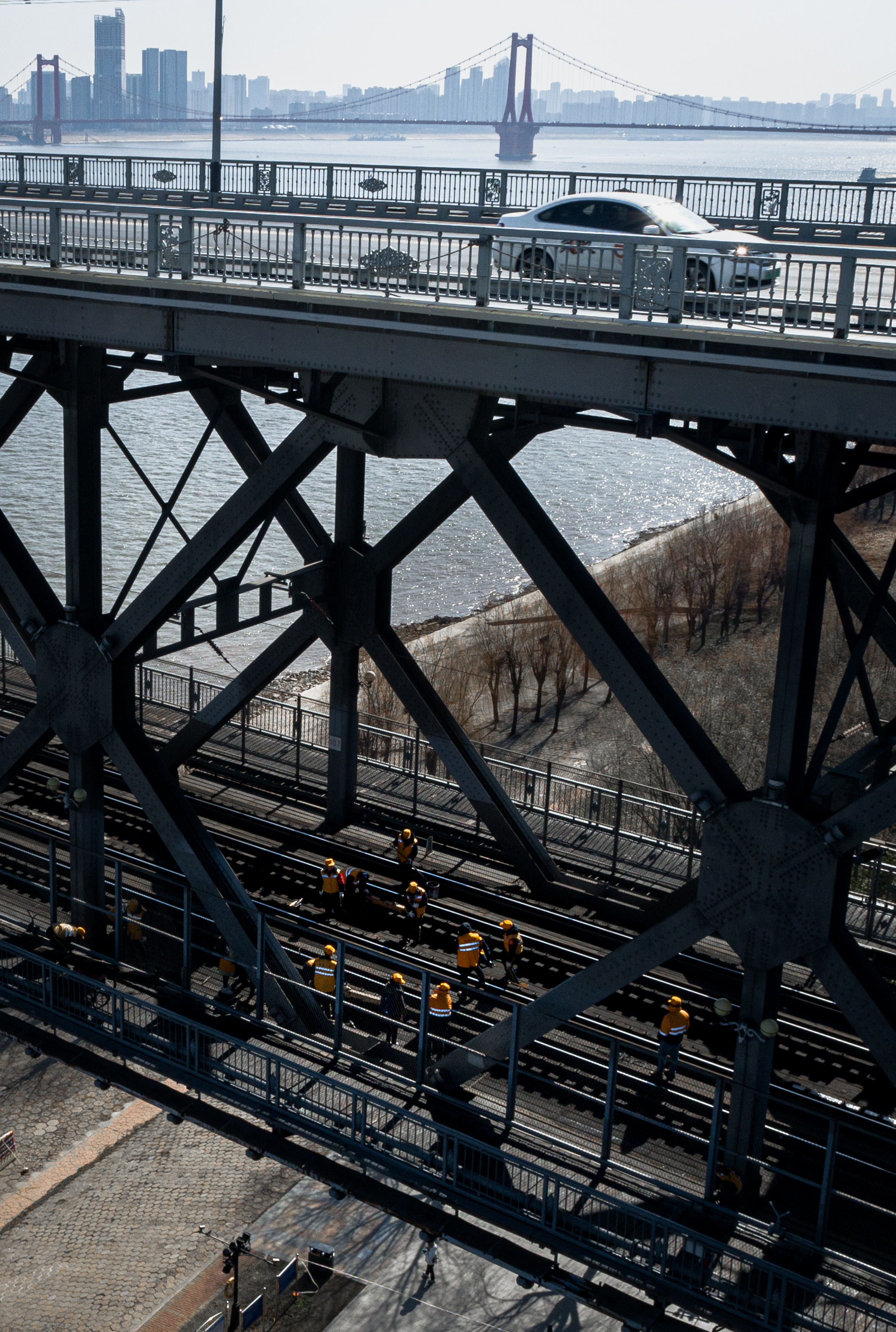 2024-02-13 19:33:20 來源:新華社 責任編輯:黃麗紅 作者:農歷大年初三,湖北武漢陽光明媚。“萬里長江第一橋”——武漢長江大橋宛若一條巨龍飛架于江水之上,氣勢恢宏。身穿工作服的陳卿明和同事,低頭、彎腰,循著大橋鐵道仔細地檢視鋼梁、枕木。