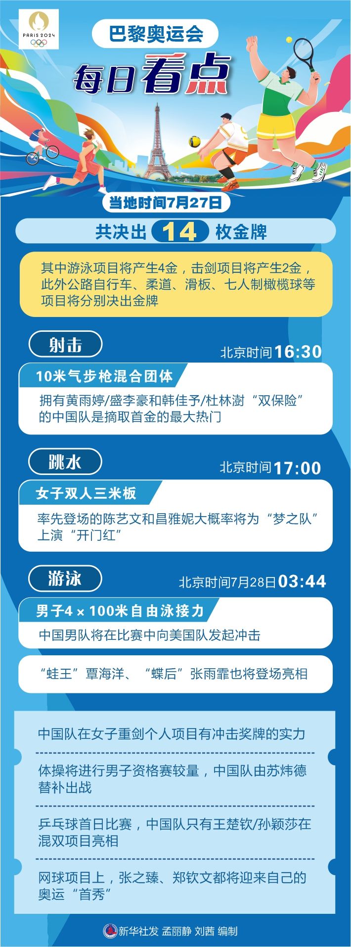 圖表|巴黎奧運(yùn)會(huì)每日看點(diǎn)(7月27日)