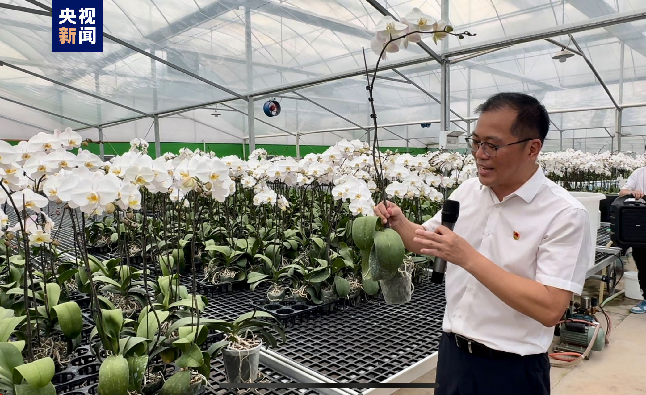 △龍潭鎮黨委書記吳才開介紹蝴蝶蘭智能溫室大棚 龍潭鎮黨委書記吳才開介紹,隨著整個龍潭鎮興起蝴蝶蘭熱,電商、運輸等產業也同步發展,還延伸出花盆、包裝等上下游產業,帶動近2000人在產業鏈就業。年人均收入達4萬元以上,年增加收入近8000萬元。