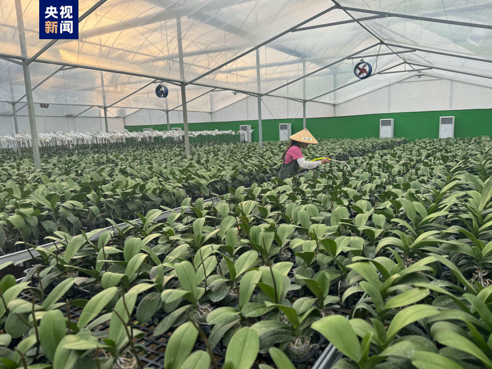△大棚里工作的花農 記者了解到,當地不少年輕人正通過網絡直播等,向外推介蝴蝶蘭花產品和本地特產等。花卉基地周圍山坡上,還種植了根系發達、修復能力強的菌草,以及百余畝櫻花、百香果、樹葡萄等兼具環保功能和經濟效益的農作物。