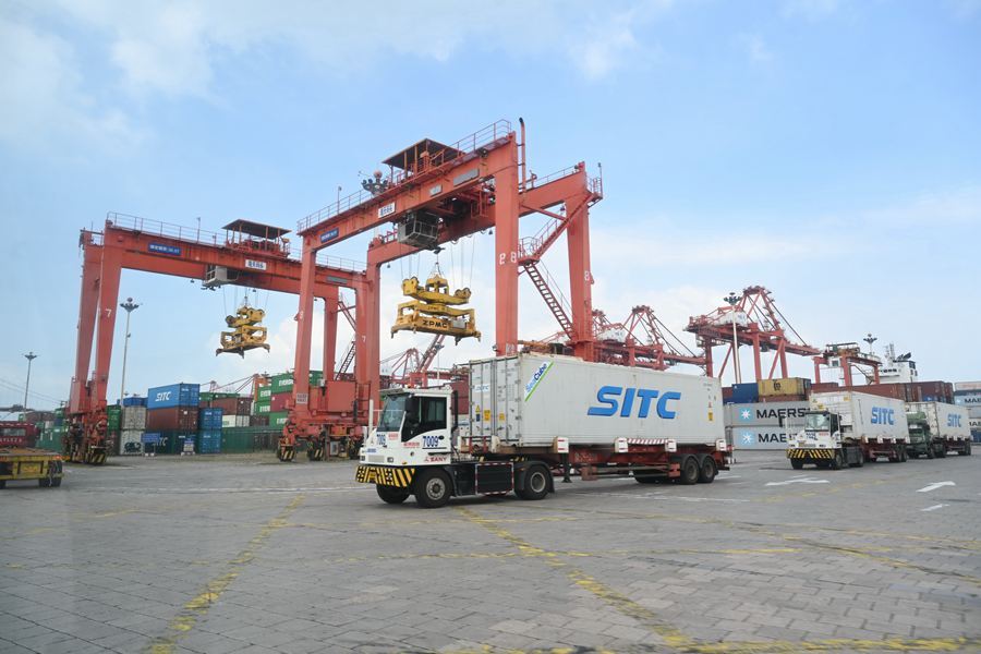 2024年8月6日拍攝的廈門港海天碼頭作業區一角。新華社記者 林善傳 攝