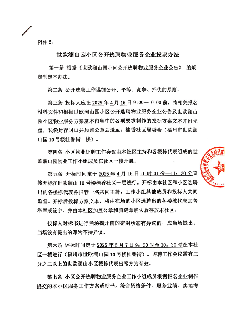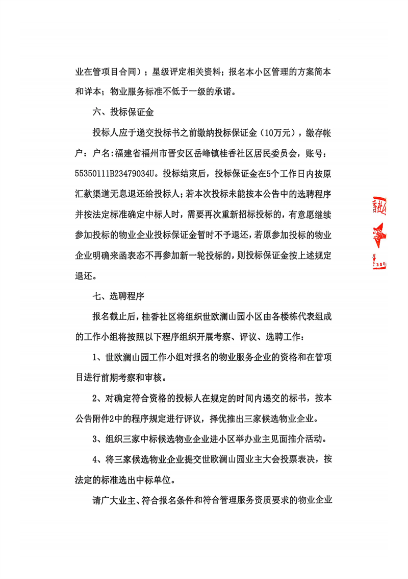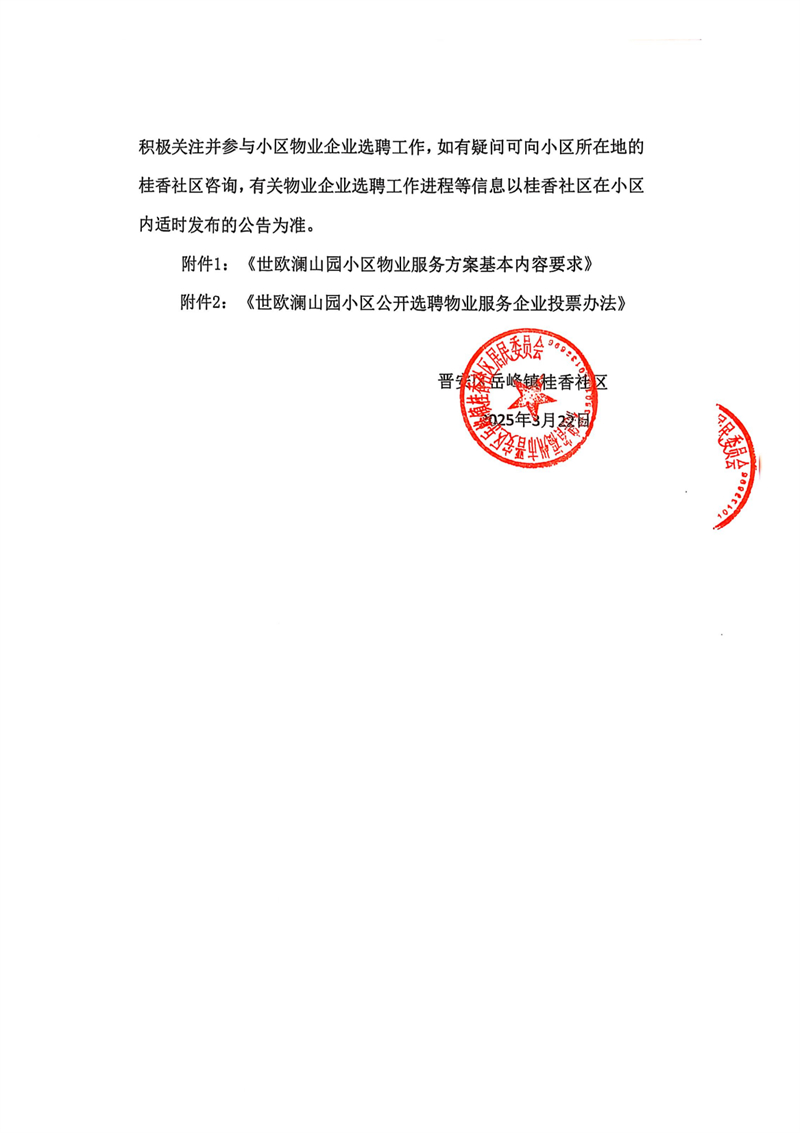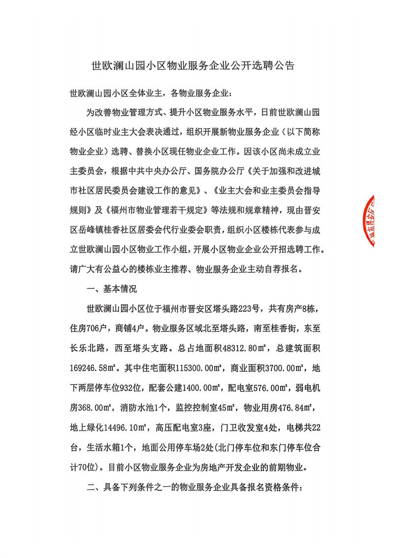 世歐瀾山園小區物業服務企業公開選聘公告
