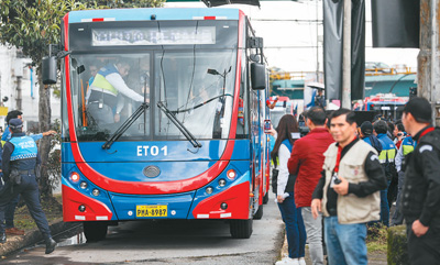 圖為在厄瓜多爾首都基多,人們體驗宇通雙源無軌電車。