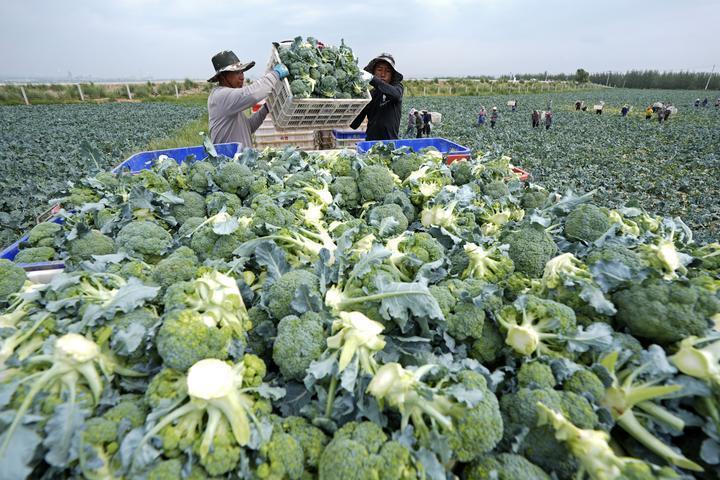 2025年7月18日,工作人員在寧夏固原市原州區(qū)彭堡鎮(zhèn)萬(wàn)畝冷涼蔬菜基地運(yùn)輸西蘭花。固原依托高海拔、氣候冷涼等“冷資源”優(yōu)勢(shì),大力發(fā)展冷涼蔬菜產(chǎn)業(yè),著力打造“六盤(pán)山冷涼蔬菜”區(qū)域公用品牌。目前已建成冷涼蔬菜規(guī)模化種植基地130余個(gè),種植面積穩(wěn)定在50萬(wàn)畝,年產(chǎn)鮮菜200萬(wàn)噸以上。“六盤(pán)山冷涼蔬菜”這張打造的“綠色名片”,已成為當(dāng)?shù)剜l(xiāng)村振興發(fā)展之路上的“熱產(chǎn)業(yè)”。