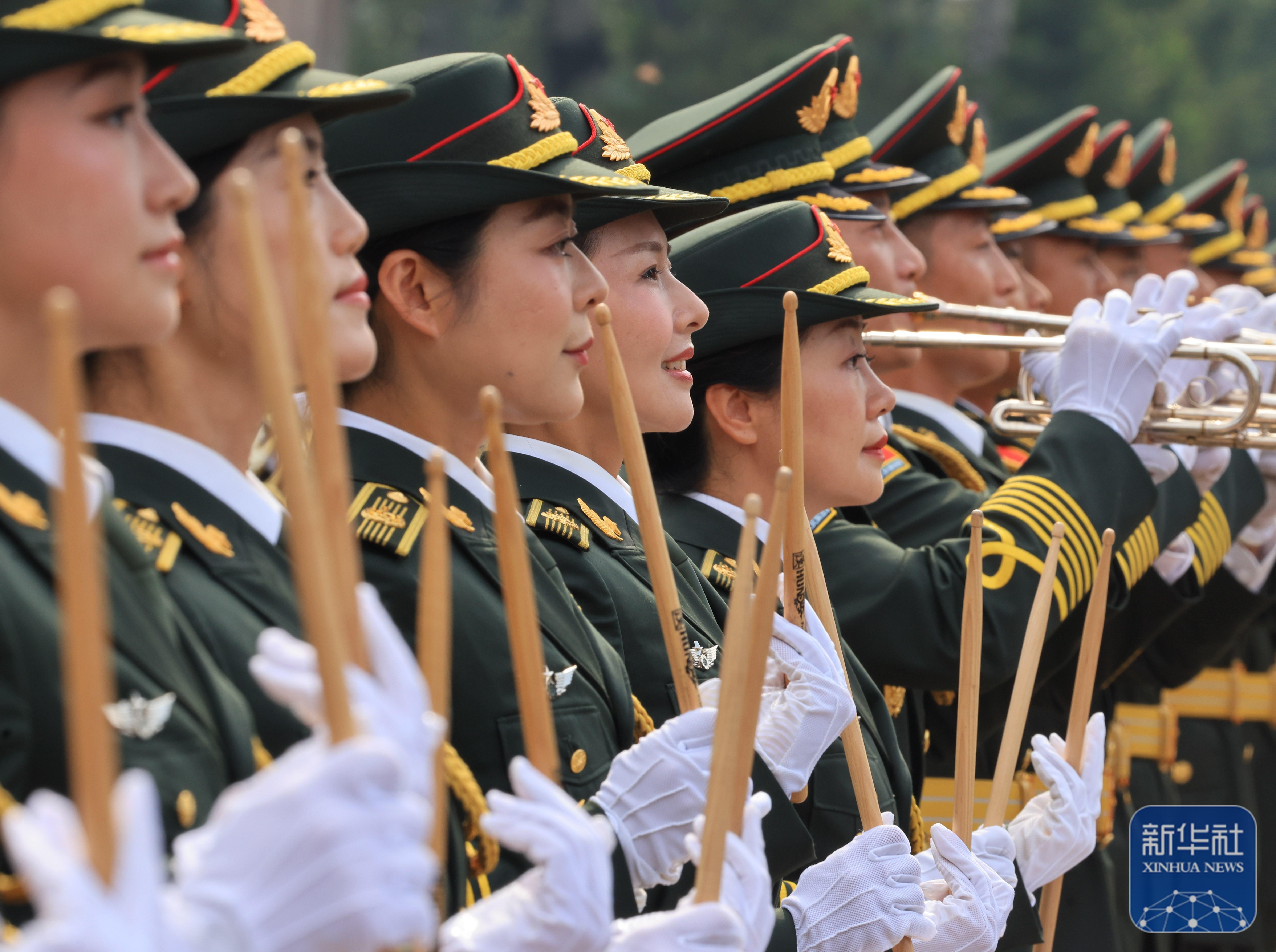 ↑ 中國人民解放軍聯合軍樂團在進行訓練(8月12日攝)。新華社記者 殷剛 攝