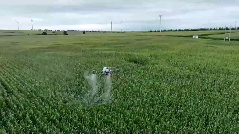■從"扛鋤頭"到"點屏幕" 智慧農業促增收 當前,正值玉米灌漿期。在內蒙古科爾沁右翼前旗察爾森鎮水泉嘎查萬畝高標準農田上空,裝載農藥的無人機正在沿著預設航線噴灑農藥。
