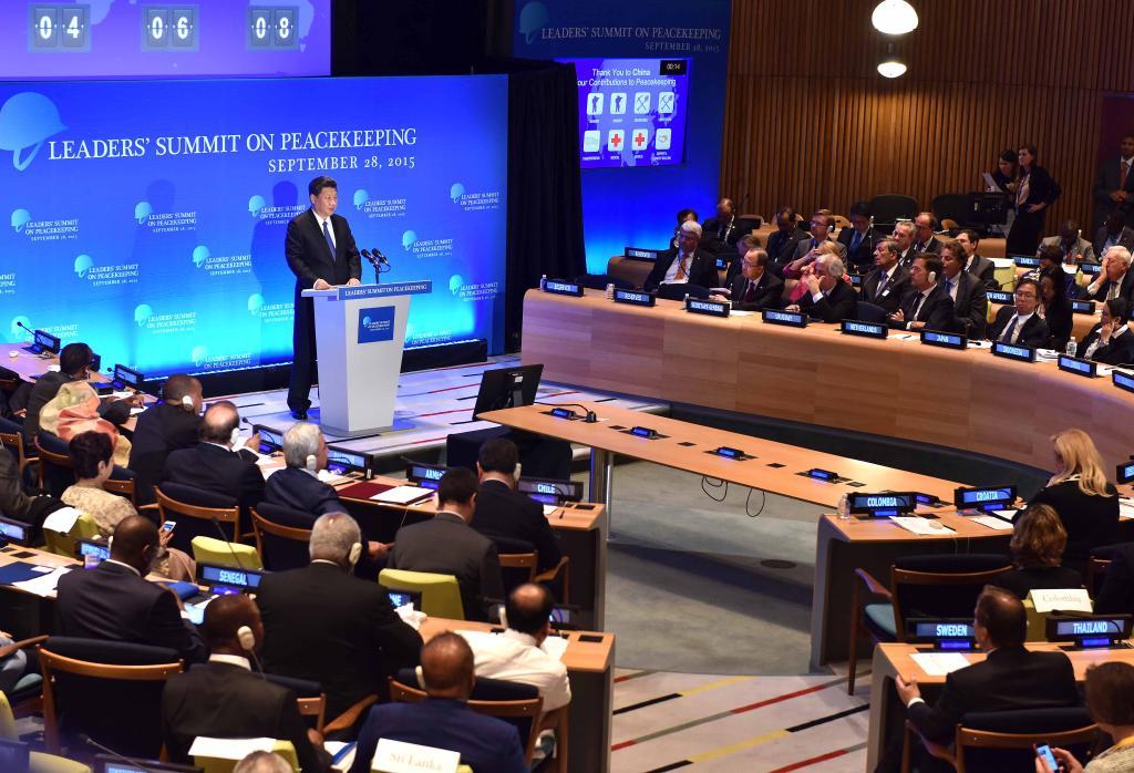 2015年9月,習近平總書記在紐約聯合國總部出席聯合國維和峰會并發表講話。新華社記者 李濤 攝