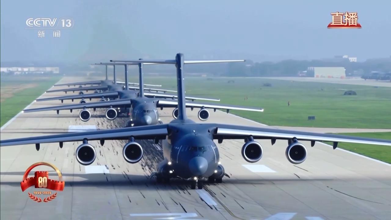 空中梯隊的戰機從首都周邊多個機場陸續起飛,將飛越天安門廣場,光榮地接受檢閱。