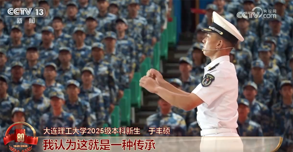 大連理工大學(xué)2025級(jí)本科新生于豐碩稱:"當(dāng)我看到受閱官兵步履鏗鏘、整齊劃一地從天安門(mén)城樓前走過(guò),抗戰(zhàn)老兵在城樓上深情注視的時(shí)候,我認(rèn)為這就是一種傳承。進(jìn)入新時(shí)代,振興中華、增強(qiáng)綜合國(guó)力的接力棒已然傳到吾輩青年肩頭。"