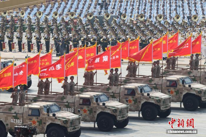 9月3日,紀念中國人民抗日戰爭暨世界反法西斯戰爭勝利80周年大會在北京隆重舉行。圖為戰旗方隊。 中新網記者 盛佳鵬 攝