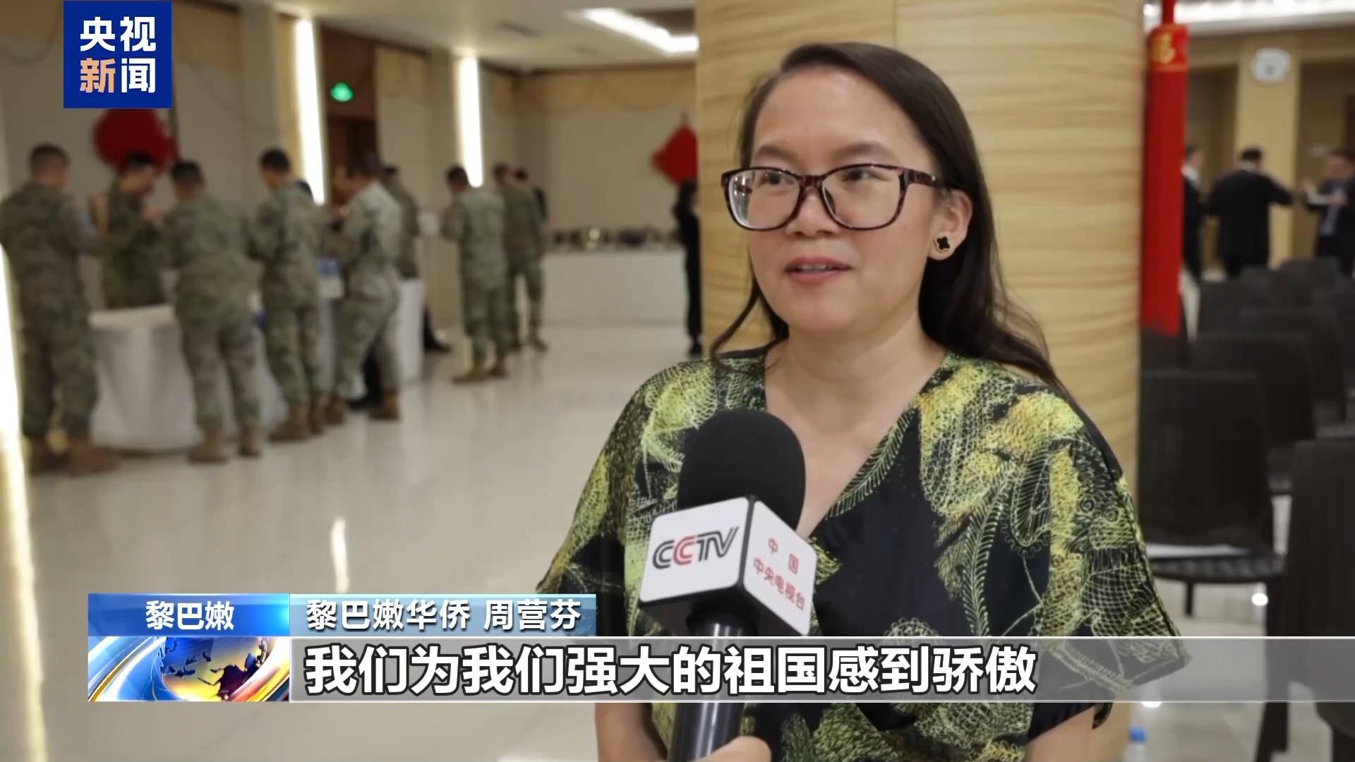 黎巴嫩華僑 地拉娜·司馬義:觀看了這個紀念儀式讓我感到非常驕傲和自豪,作為一名中國人,作為在海外的僑胞,有祖國在我們的背后給予我們最強大的力量,所以我感到非常驕傲和自豪。