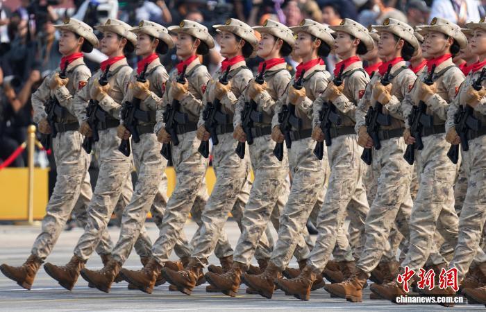 9月3日,紀念中國人民抗日戰爭暨世界反法西斯戰爭勝利80周年大會在北京隆重舉行。圖為民兵方隊接受檢閱。該方隊全部由女民兵組成,這是民兵首次亮相以紀念抗戰勝利為主題的閱兵活動。 中新網記者 趙文宇 攝