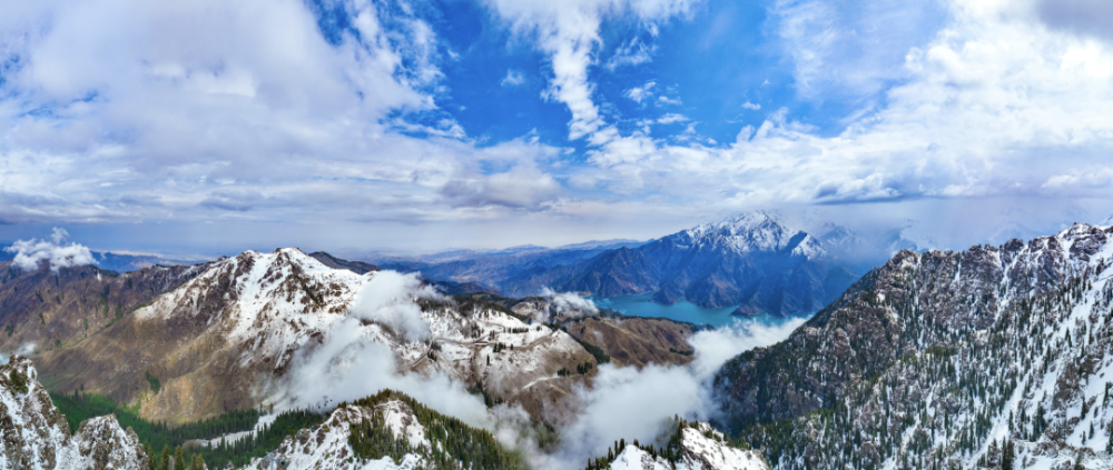 天山天池風光(無人機照片)。(昌吉回族自治州融媒體中心記者 何龍 攝)
