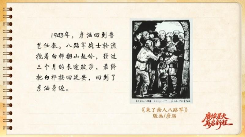 1943年,彥涵回到魯藝任教。八路軍戰士輪流抱著白樺翻山越嶺,經過三個月的長途跋涉,最終把白樺接回延安,回到了彥涵身邊。