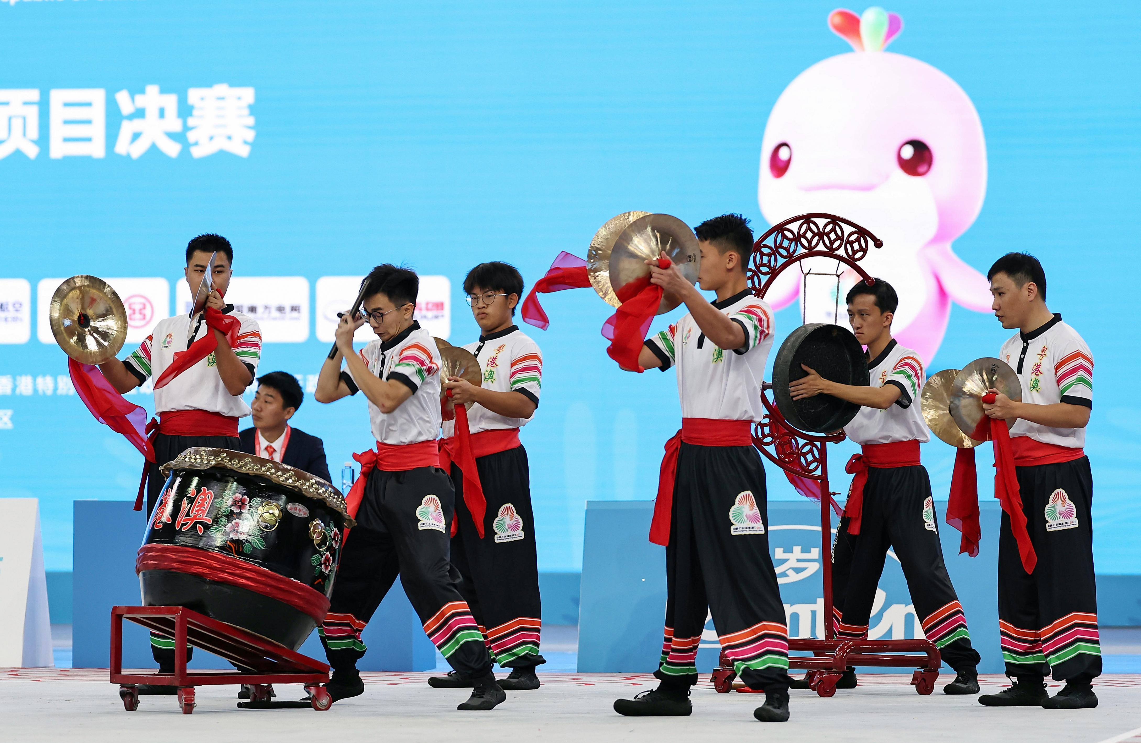 11月11日,粵港澳聯(lián)隊(duì)在第十五屆全國(guó)運(yùn)動(dòng)會(huì)群眾展演舞龍舞獅南獅自選項(xiàng)目決賽比賽中。最終,粵港澳聯(lián)隊(duì)獲得一等獎(jiǎng)。 新華社記者 王鵬 攝