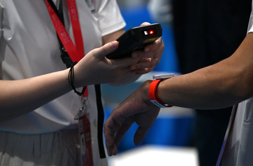 11月8日,全運(yùn)會(huì)歷史上首次舉辦的跨境公路自行車男子個(gè)人賽決賽開(kāi)賽,這是當(dāng)日拍攝的通關(guān)手環(huán)。