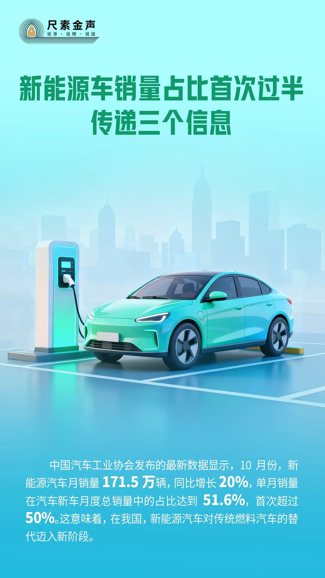 新能源車(chē)銷(xiāo)量占比首次過(guò)半,傳遞三個(gè)信息。