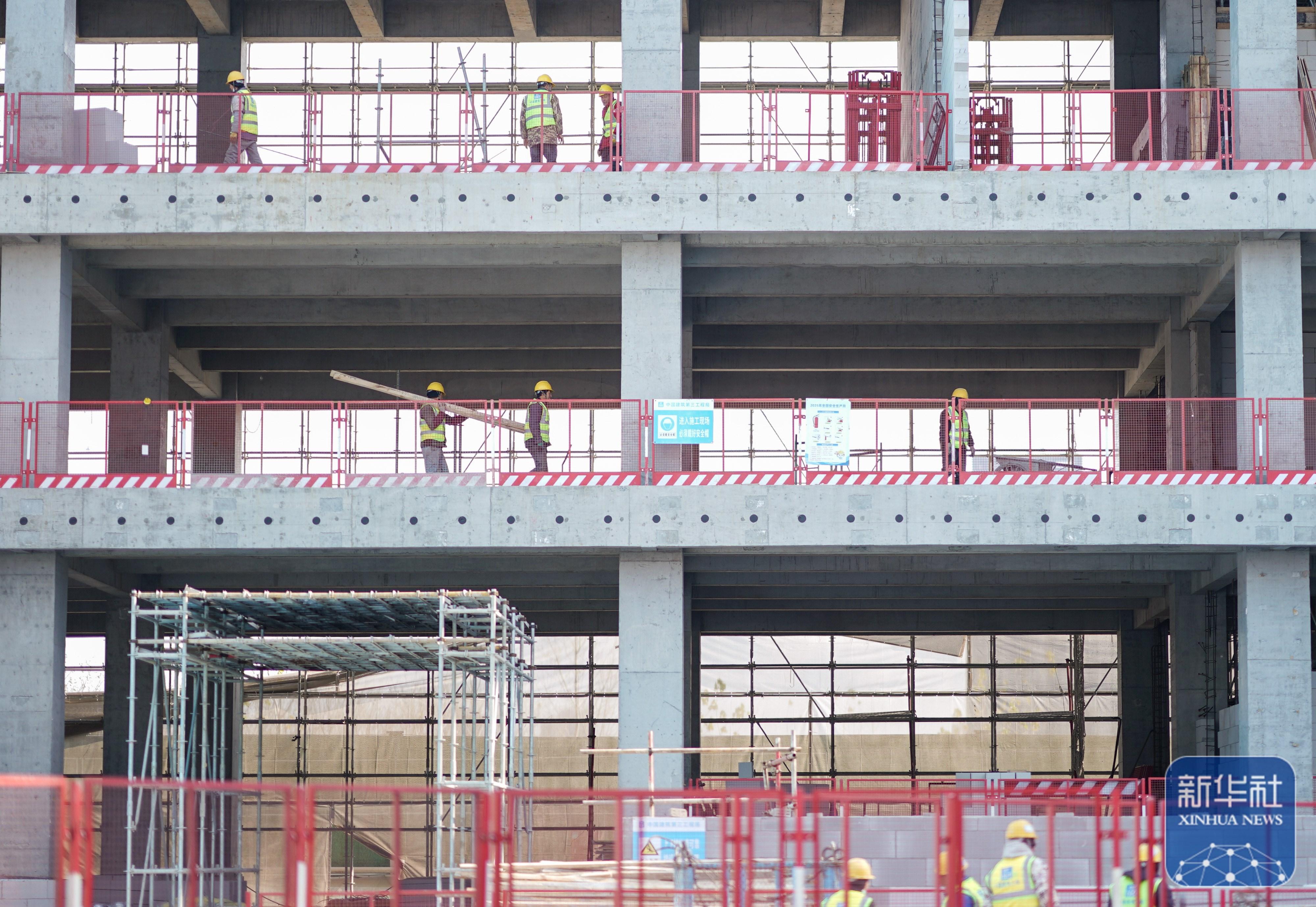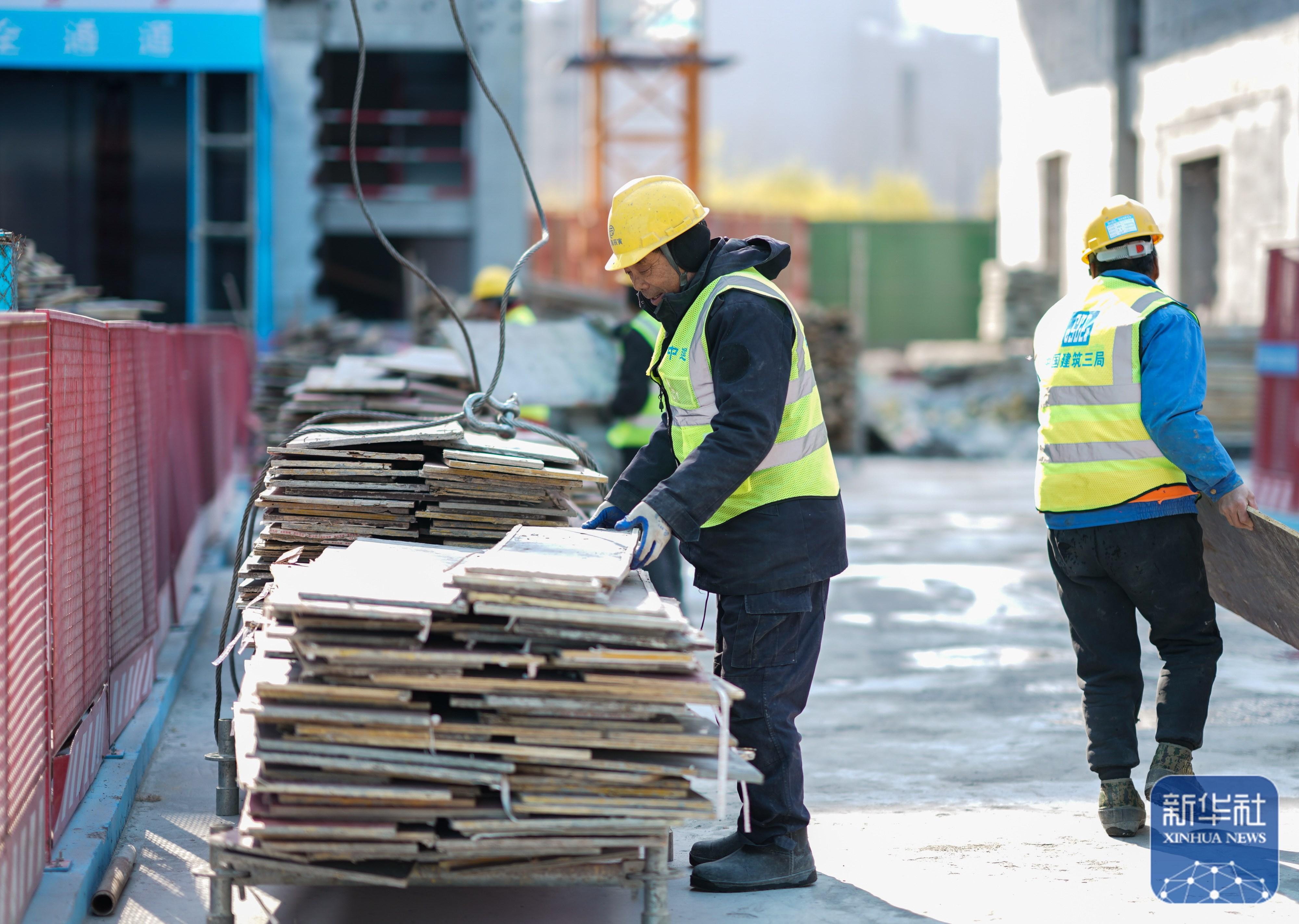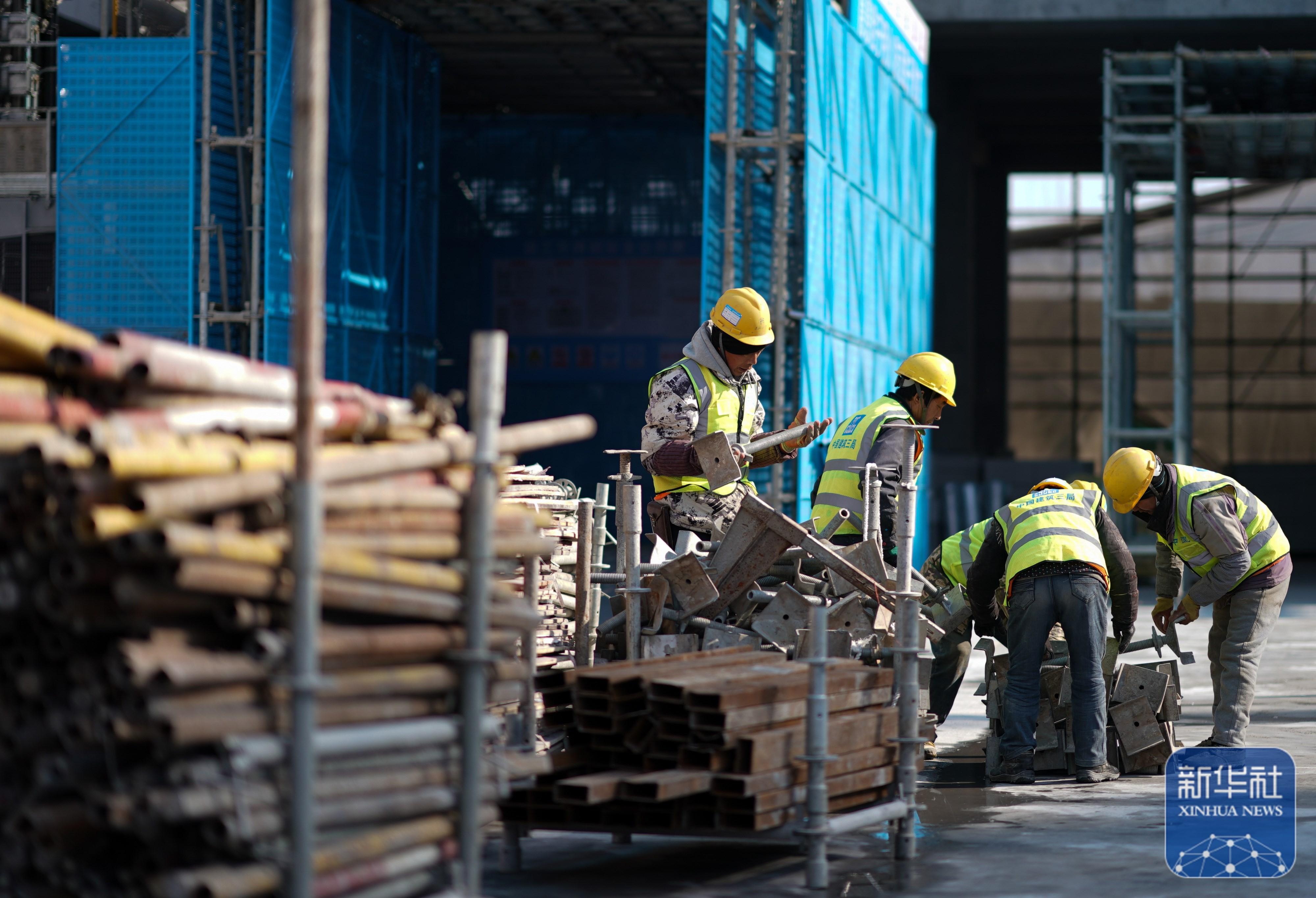 ↑ 1月2日,工人在位于上海的中建三局一公司燦瑞科技全球芯片研發(fā)中心項目工地施工。新華社記者 丁汀 攝