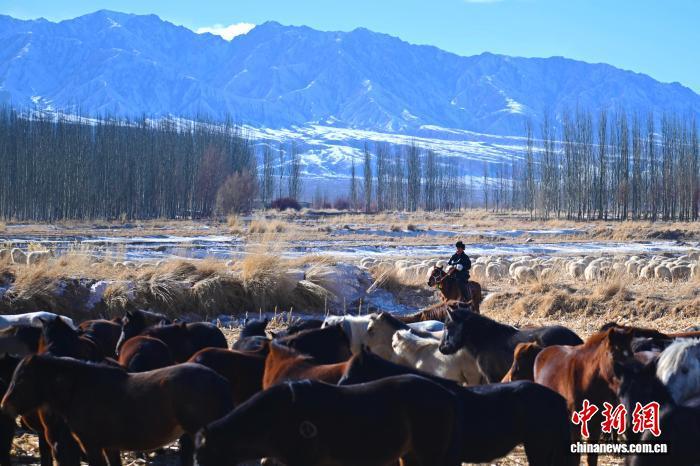 寒冬時節,中新社、中新網記者走進甘肅省酒泉市肅北縣黨城灣鎮浩布勒格村,該村年輕的養馬人其烏摳每天騎馬去草場給馬匹拉水、投喂飼料。閑暇時,他還會使用無人機觀察馬匹的動態行蹤,通過網絡平臺分享自家馬兒的視頻。