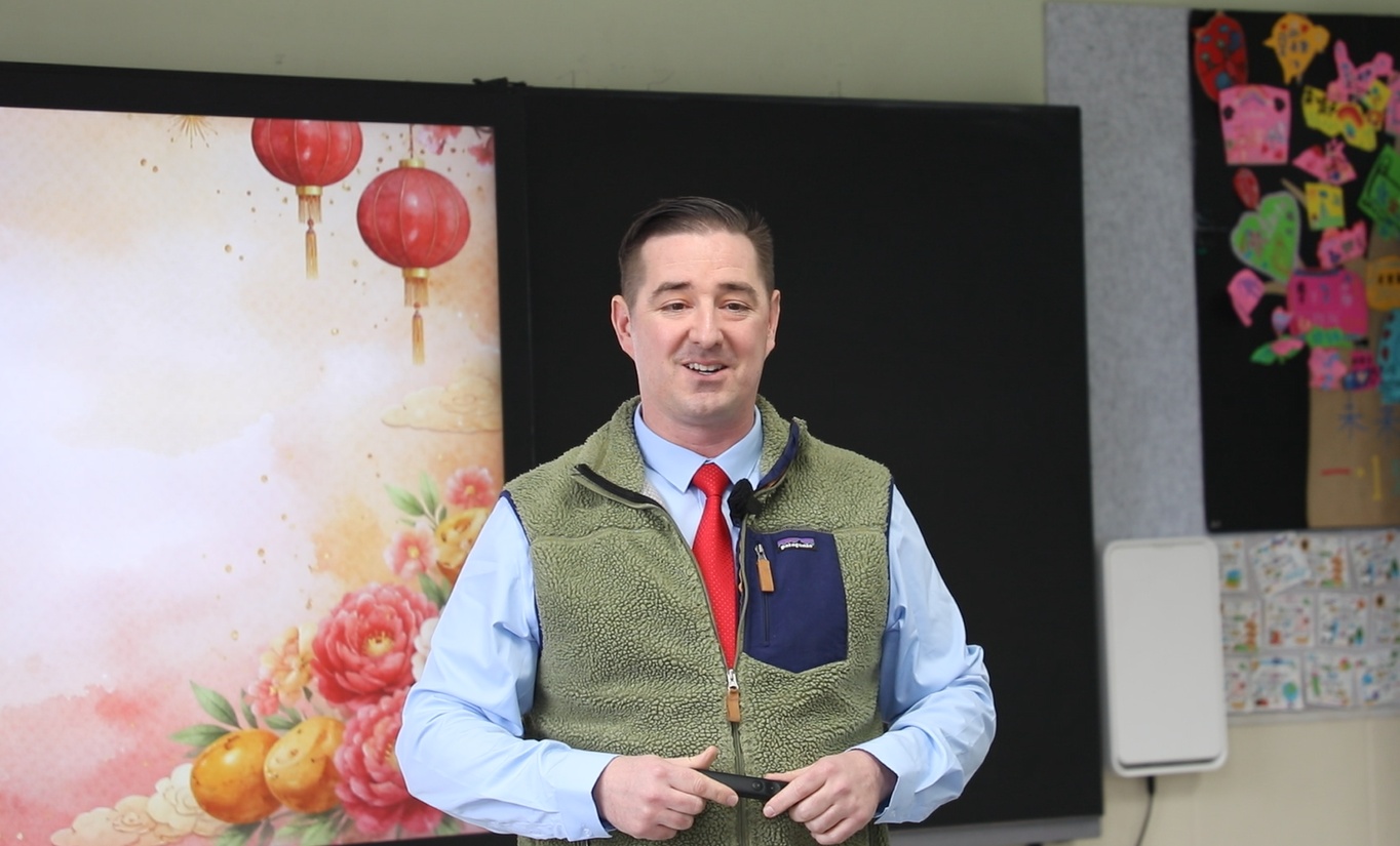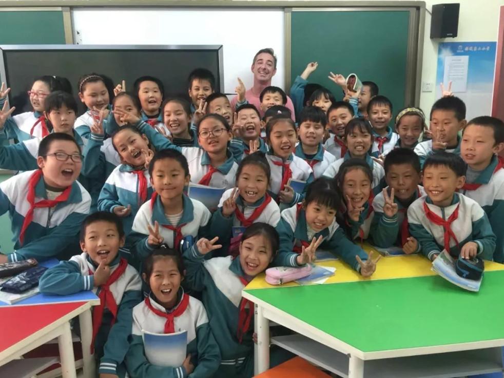 清晨的陽光,透過山東淄博高新區外國語學校一年級教室的窗戶,灑在一群稚嫩的臉龐上。阿德里安正站在講臺上,面帶微笑,為孩子們教授英語課。