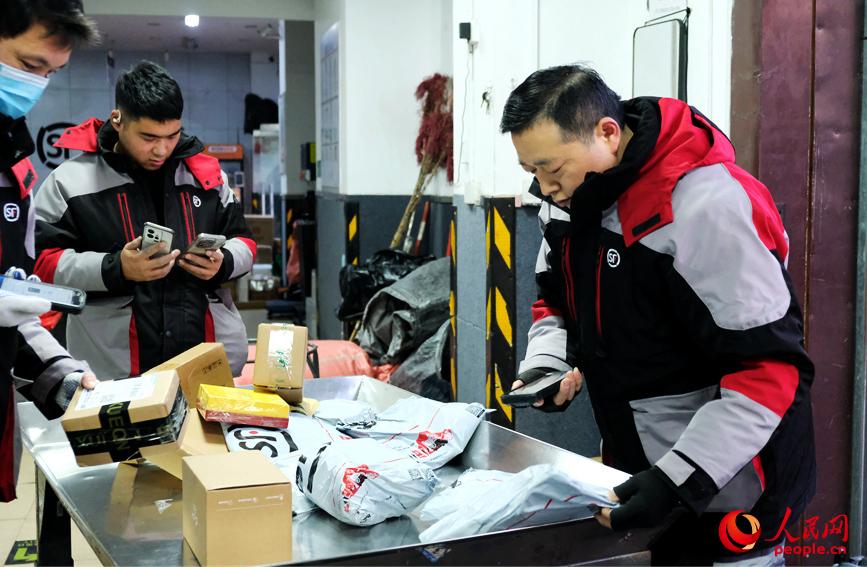 分揀快遞,錄入系統(tǒng)。人民網(wǎng)記者 常力元攝