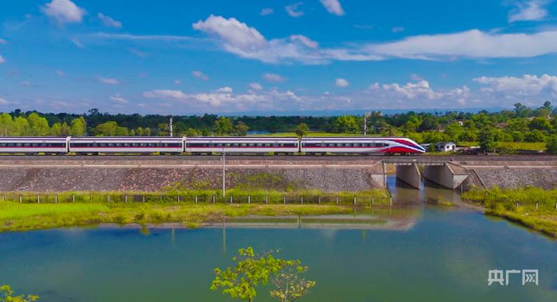 中老鐵路D87次國際旅客列車奔馳在老撾萬象(央廣網發 楊永全 攝)