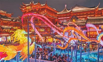 上海豫園燈會現場游人如織。