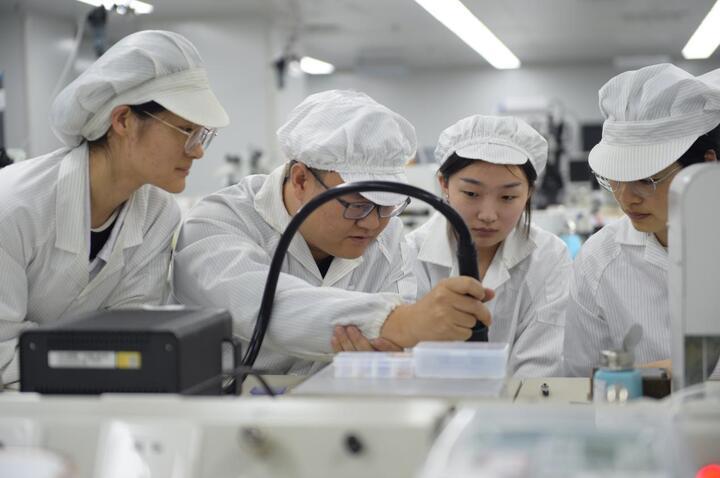 初入車間,焊接封裝尺寸0.5×0.25毫米的電阻,比芝麻粒四分之一還小,僅第一步夾取就困難重重,“最艱難時,100次焊接僅成功1次。”愛琢磨的張雯集摸索出一套“笨辦法”:每次失敗后記下烙鐵溫度、手勢角度,甚至室內溫濕度。