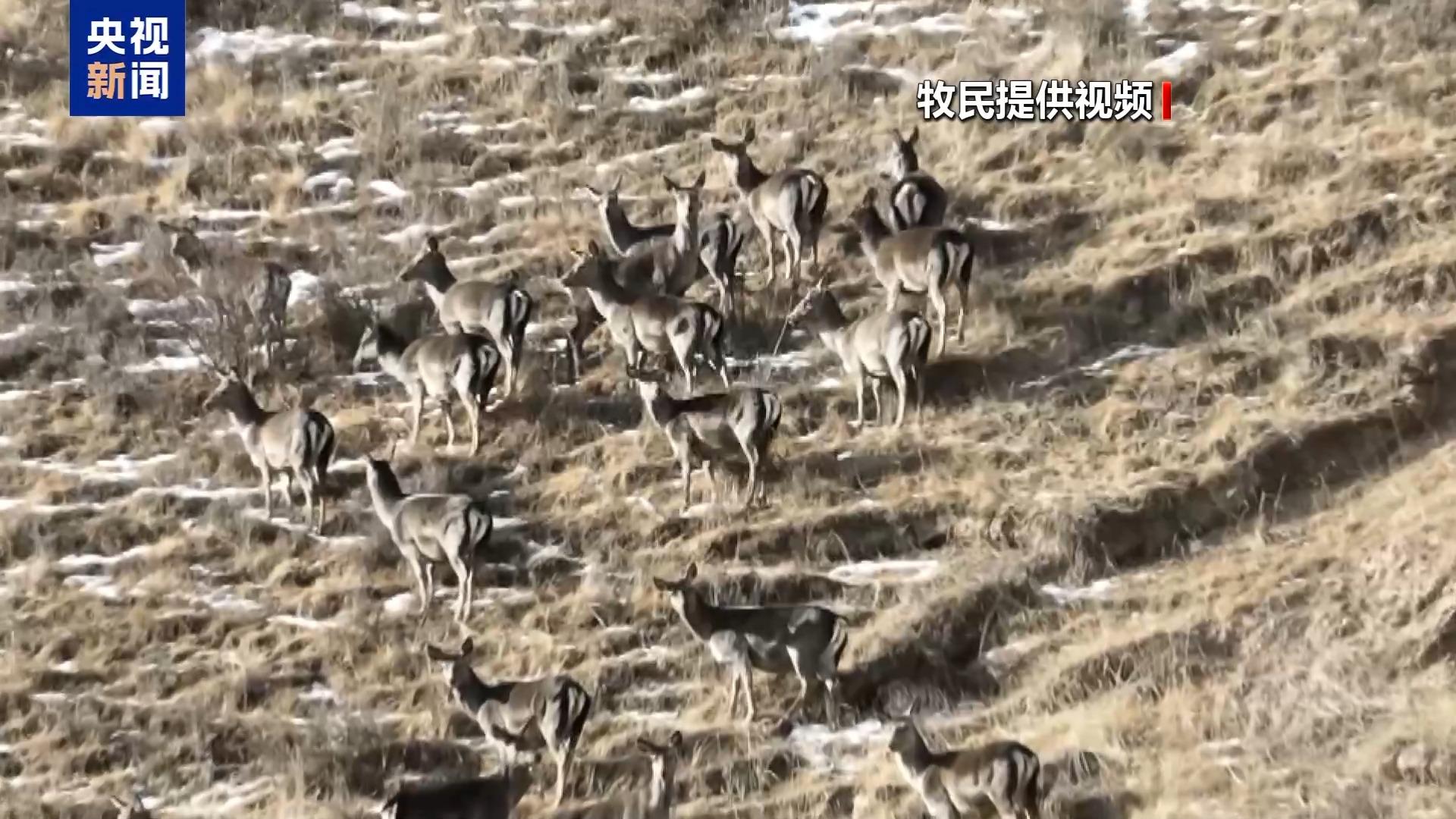 肅南裕固族自治縣馬蹄藏族鄉牧民 尕滿草:祁連山不光是我們的家,它也是野生動物們的家。因為保護得好,現在我們下山借牧了,它們繁殖得越來越多,它們要從樹林里山上下來找吃的,經常翻越圍欄的時候別在那兒了。這是鹿,圍欄已經勒到它肚子上了。這個是媽媽,有鹿寶寶,它們萬一受傷了,沒人看,天這么冷,它們就會被凍死餓死。隔三岔五我們會上來看一下。