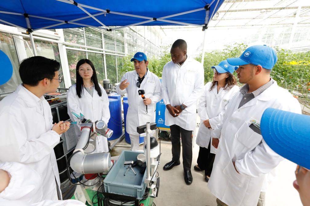 2024年5月22日,“中國—FAO(聯合國糧農組織)南南合作拉丁美洲和加勒比地區農村生計改善和糧食體系轉型能力建設活動”學員赴江蘇省農業科學院開展交流。新華社發(江蘇省農業科學院供圖)