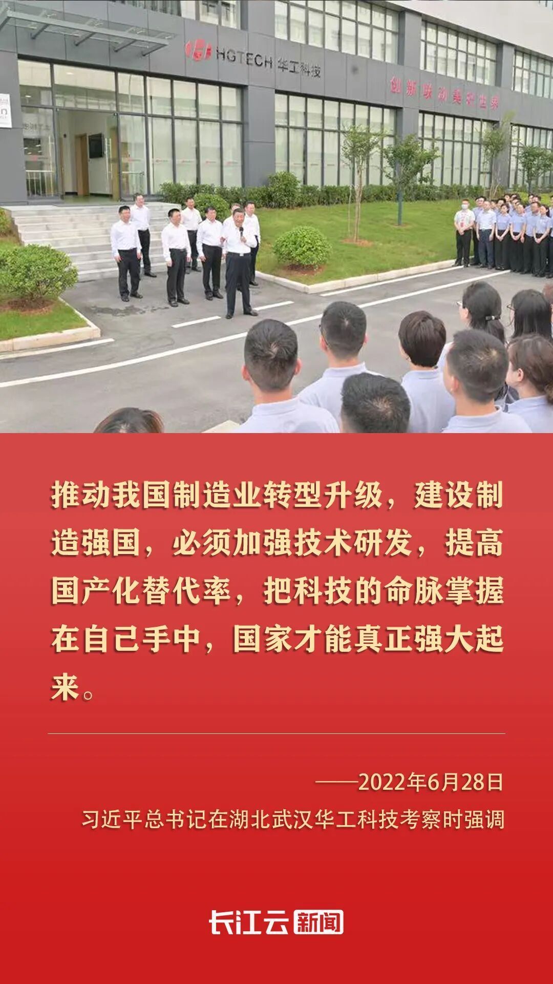 2022年6月,習近平總書記來到湖北武漢考察,第一站就來到光谷,來到華工科技。他指出,湖北武漢東湖新技術開發區在光電子信息產業領域獨樹一幟。要加強技術研發攻關,掌握更多具有自主知識產權的核心技術,不斷延伸創新鏈、完善產業鏈,為推動我國光電子信息產業加快發展作出更大貢獻。