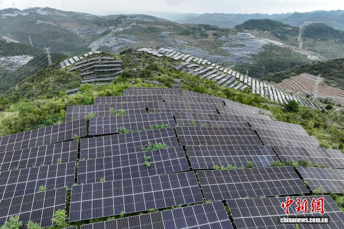 2025年9月19日,航拍貴州省黔西市定新彝族苗族鄉農業光伏電站。(無人機照片)中新社記者 瞿宏倫 攝