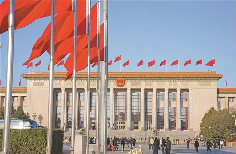 圖為3月11日上午,全國政協十四屆四次會議在北京人民大會堂舉行閉幕會。這是人民大會堂外景。記者 陶玥 攝