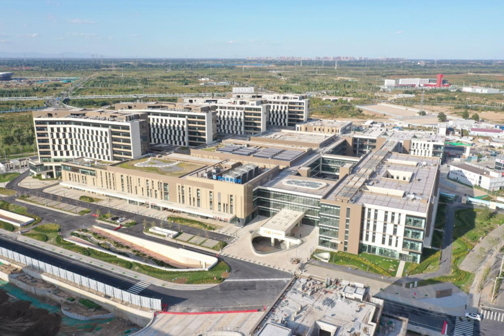2023年6月30日,中共中央政治局召開會議,審議《關于支持高標準高質量建設雄安新區若干政策措施的意見》。此后,一攬子特殊支持政策陸續落地雄安新區。2023年10月16日,雄安宣武醫院開診。首都醫科大學宣武醫院派來管理團隊及骨干醫生,重點服務疏解人員和新區群眾,并輻射京津冀地區。這是2023年9月30日拍攝的雄安宣武醫院(無人機照片)。
