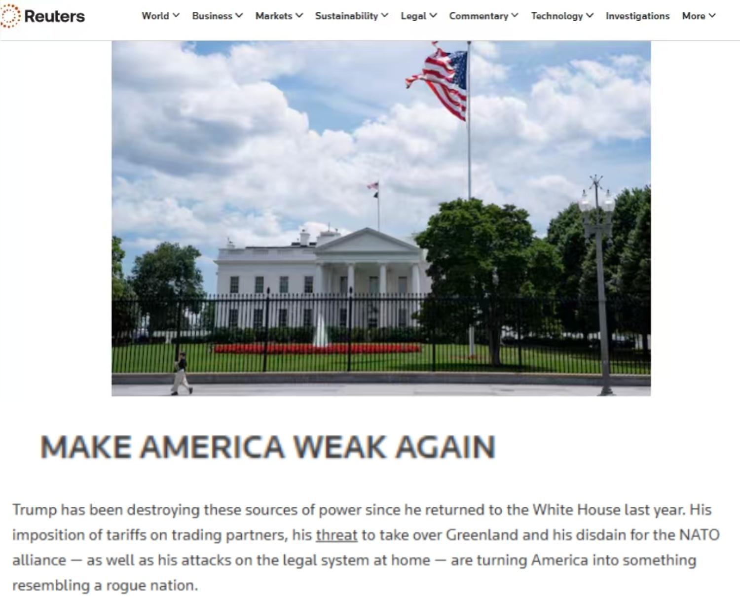 文章認為,美以對伊朗的軍事行動正在加速這一進程。可能的情況是,這位曾承諾“讓美國再次偉大”的領導人,反而會讓美國變得“更加虛弱”。