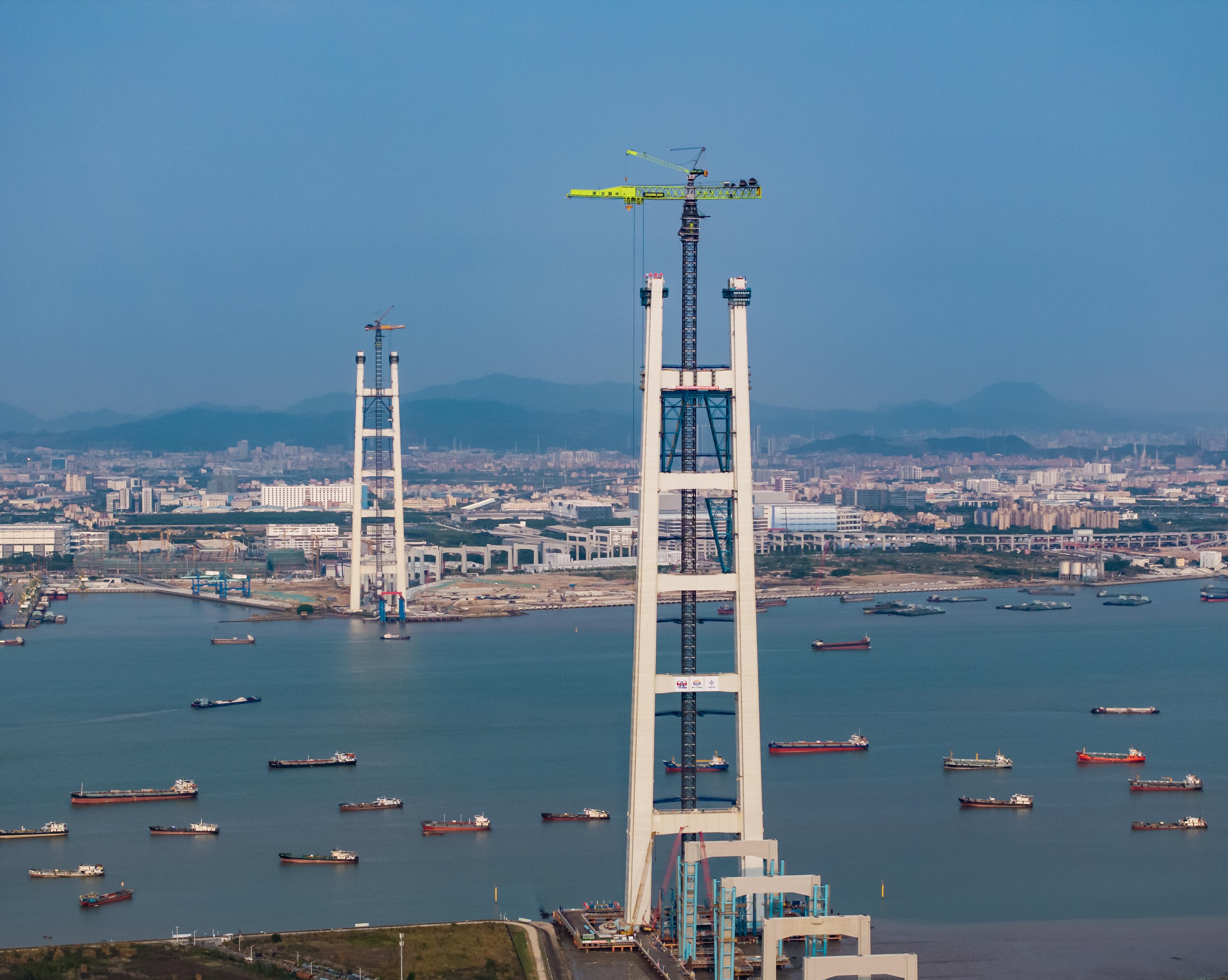 342米!世界最高雙層懸索橋主塔亮相珠江口