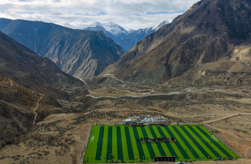 西藏昌都市洛隆縣馬利鎮足球場(無人機照片)。新華社記者 姜帆 攝