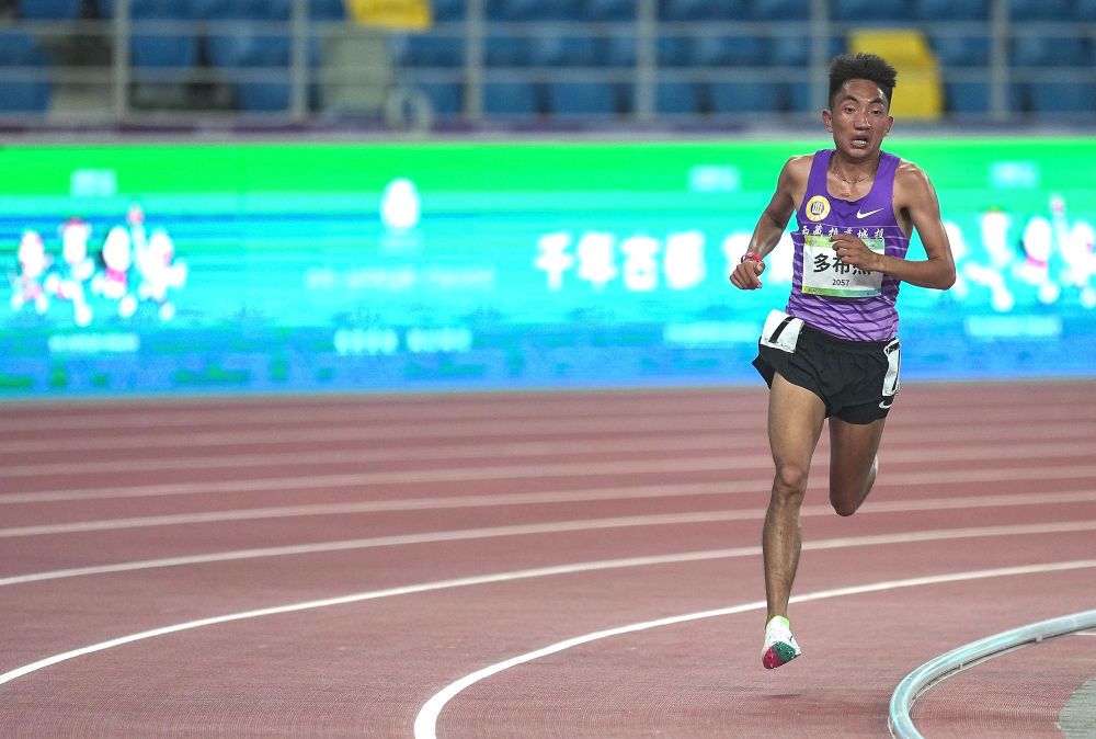 西藏隊選手多布杰在第十四屆全運會田徑男子10000米決賽中奪冠。新華社記者 彭子洋 攝