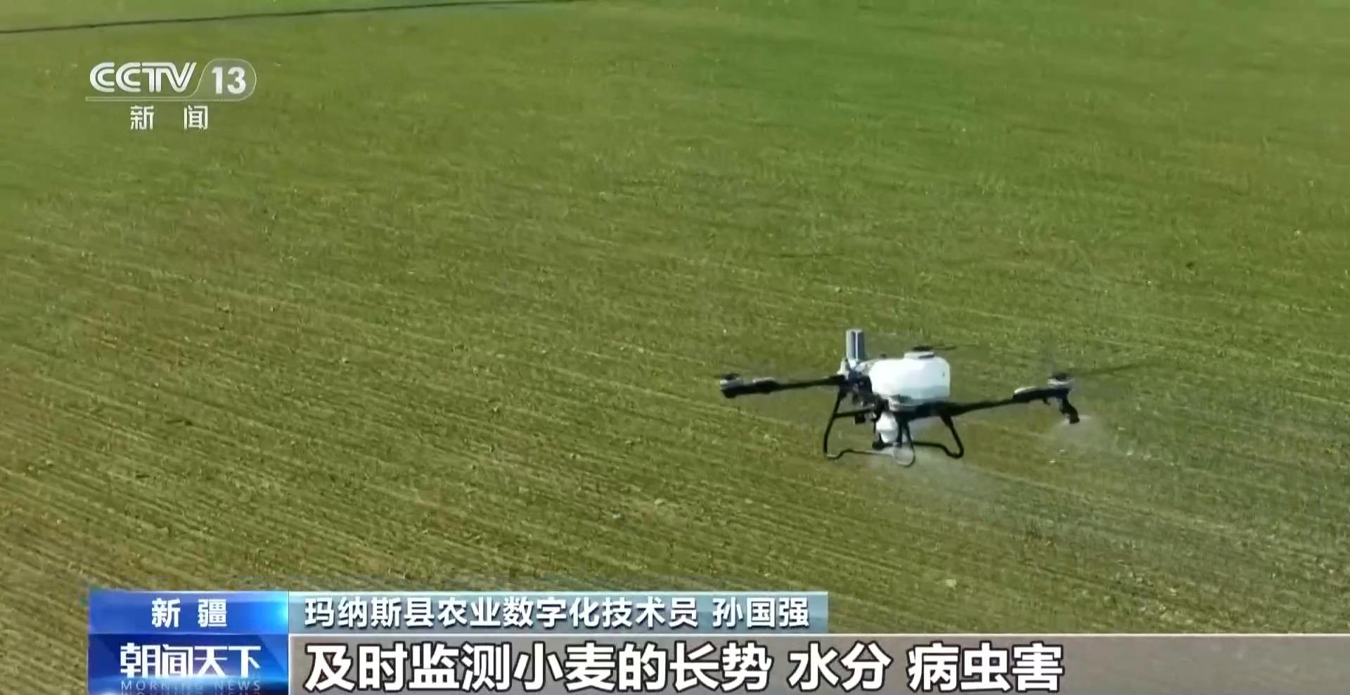 在瑪納斯縣鄭家莊村,這兩天,當地正在開展植保作業,預防小麥雪腐病。雪腐病是冬小麥早春主要病害,多在積雪融化后低溫高濕環境下發生,易造成麥苗爛根、枯葉、成簇枯死。瑪納斯縣農業數字化技術員監測發現,當地部分田塊受前期低溫積雪影響,雪腐病發病風險高于往年,為此,農業數字化技術員結合苗情、墑情、地力條件,科學制定了“一田一策”追肥方案,精準調控施肥量與飛行參數,助力冬小麥返青拔節。
