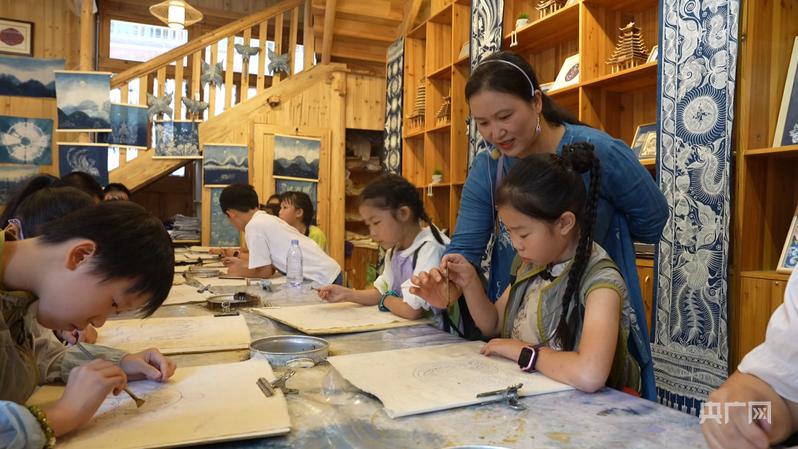 陸勇妹正在教孩子們學習蠟染技藝(央廣網發 吳光輝 攝)