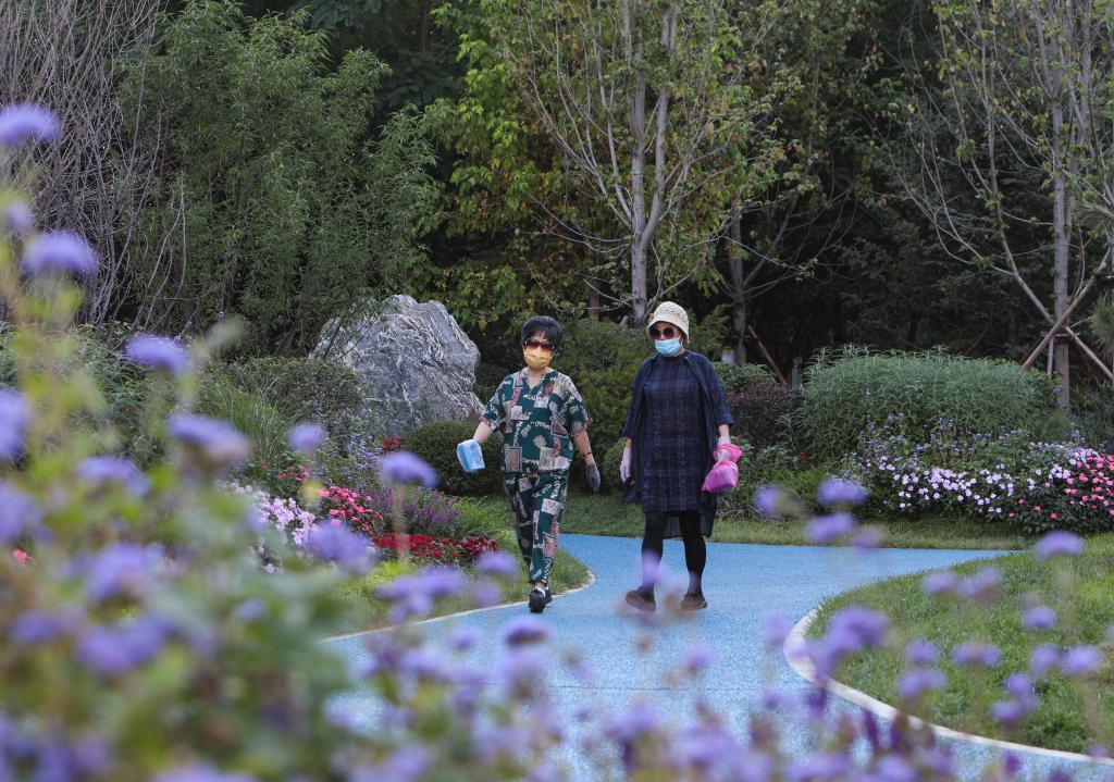 市民在沈陽市和平區文體西路一處“口袋公園”內散步。(資料圖片)新華社記者王乙杰 攝