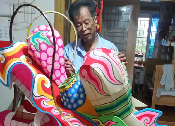 福州南后街花燈制作工藝省級代表性傳承人鄭祥霖正在制作龍燈中的“龍頭”(受訪者供圖) 福州素有燈市舊俗,明代萬歷學者王應山《閩大記》有“沿門懸燈,通宵游賞,謂之燈市”的記載。而南后街作為福州歷史文化街區三坊七巷的中軸線,曾經是福州市區傳統花燈最大的制作和售賣集市。 福州花燈有著悠久的歷史,早在唐代,福州就成為全國盛行花燈活動的十大城市之一。南后街是福州花燈的發源地,至今仍是福州市花燈手工制作的中心。福州元宵花燈品種多樣,色澤鮮艷,獨具福州鄉土生活氣息。明清時期,南后街有20多家花燈制作店,其中鄭祥霖的玉華花燈店歷史最長,手藝精湛,是最具代表性的一家。 2007年,福州南后街花燈制作工藝列入福建省第二批省級非物質文化遺產名錄。2008年底,南后街(花燈)被文化部命名為“中國民間文化藝術之鄉”。 |